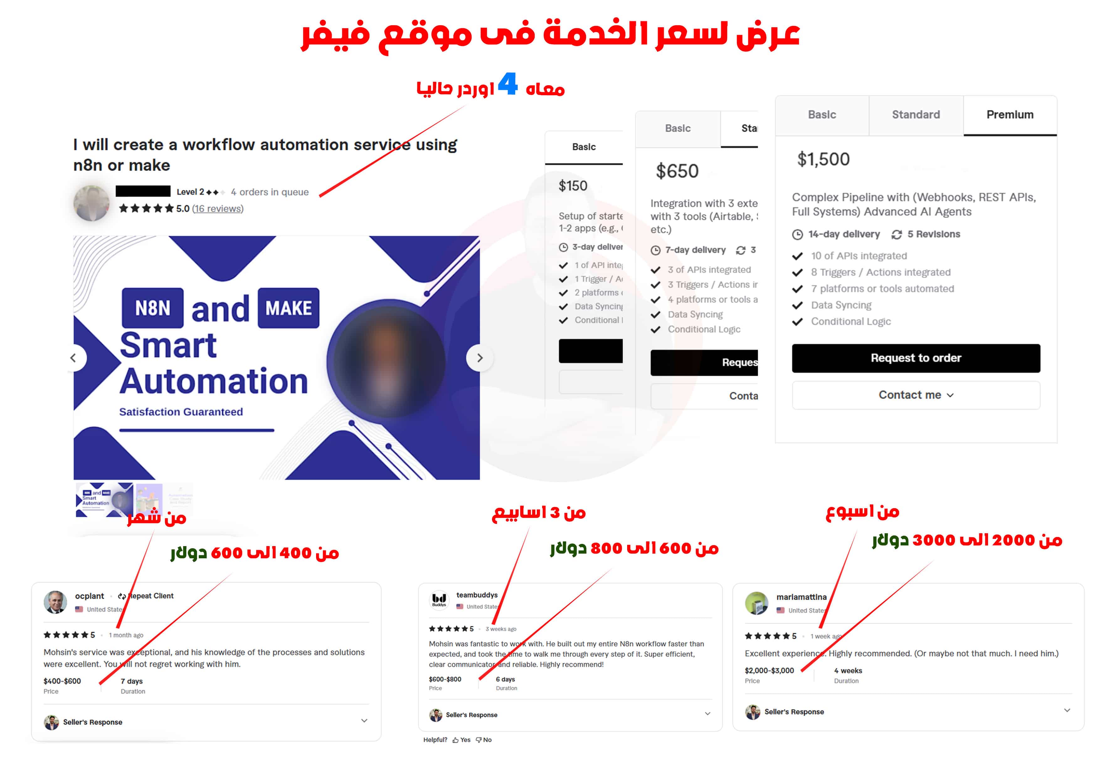 مجال الأتمتة بالذكاء الاصطناعي هو أحدث المجالات، واللي هيبقى لا غنى عنه في السنوات القادمة. وحاليًا لسه ناس كتير متعرفش عن المجال ولا عن أرباحه الضخمة اللي بتوصل لـ 10,000 دولار في المشروع الواحد. وعلى مواقع العمل الحر بتبدأ من 200 إلى 3000 دولار زي فايفر، وده هنشوفه مع بعض في الفيديو التعريفي بالدورة. ولو حتى اشتغلت على مواقع العمل الحر العربية زي خمسات، مش هتلاقي منافسين كتير، فحاول تكون من أوائل الناس وتبدأ النهارده. لأن خلال كام سنة السوق هيتشبع والمنافسة هتبقى أصعب، بس لو عملت لنفسك اسم وخبرة، ساعتها هتكون خارج المنافسة.